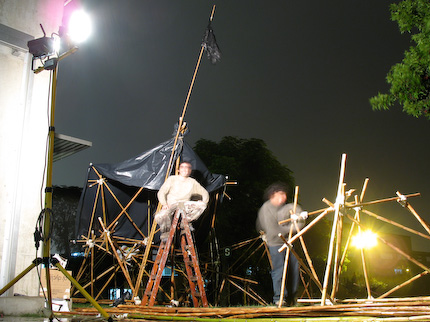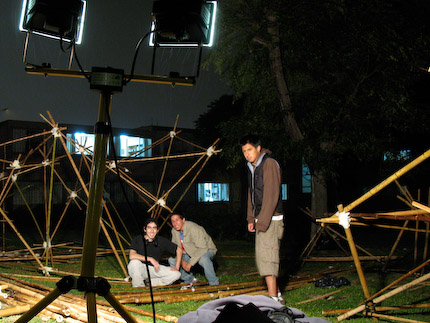 Todo llegó el Sábado 7 (de junio) a las 7pm a la universidad y nos tomamos la molestia de cargar todo ese "chuuuuupo" de bamboo desde el estacionamiento hasta la facultad.