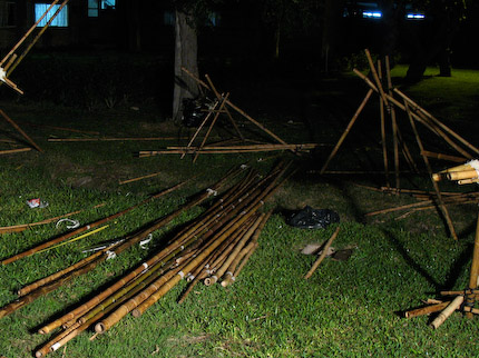 Y como no llovió durante el día, los bamboos estuvieron lo suficientemente secos como para hacer algo