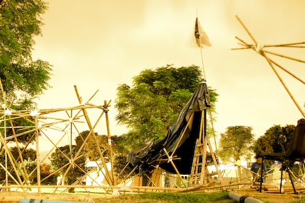Para evitar que se me desarme todo con una lluvia (como lo que pasó con muchos) le compré su plastico. Parece un tipi indio.